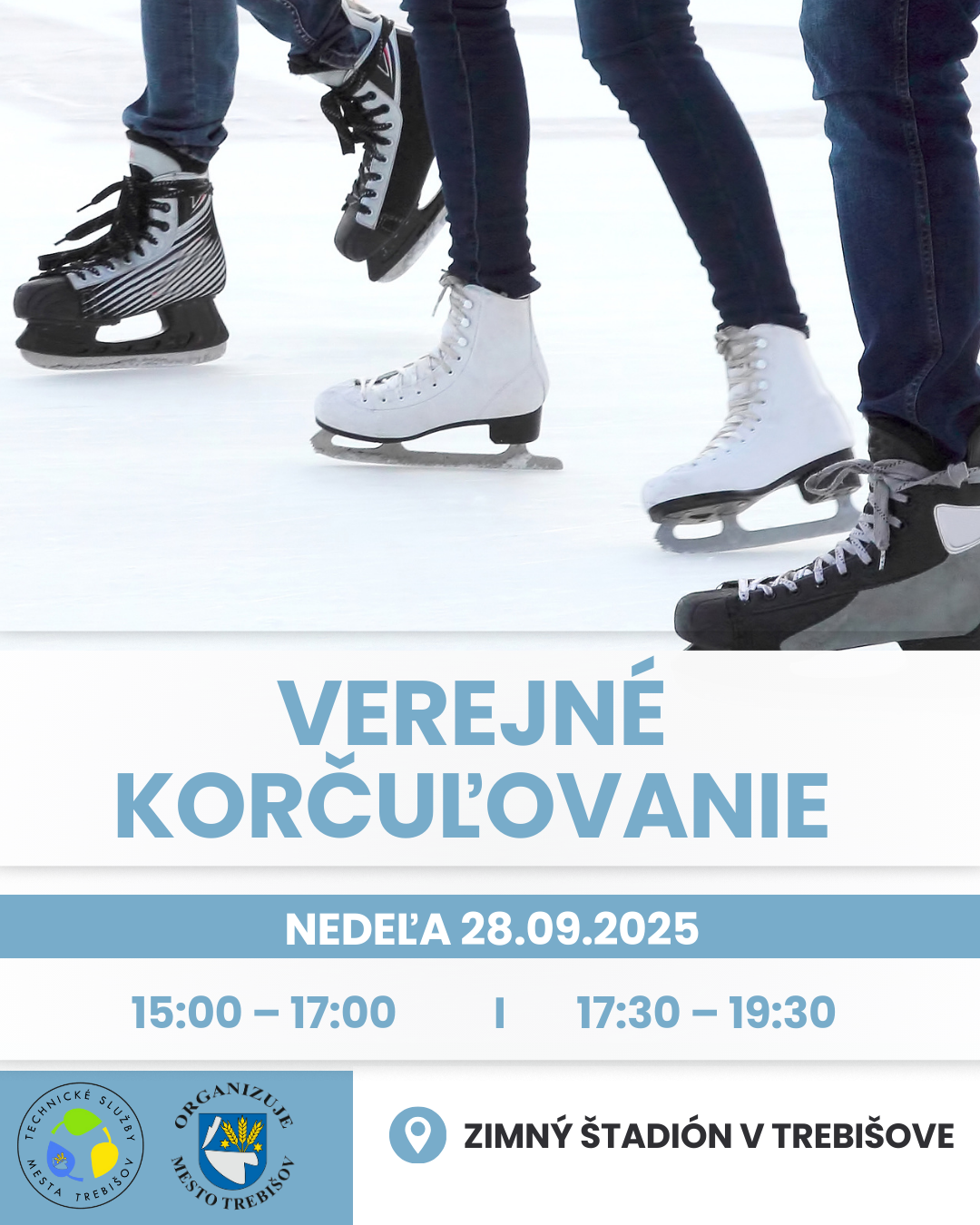 K dispozícii: požičovňa korčúľ, brúsenie, výstroj, aj pomocné bránky pre najmenších.