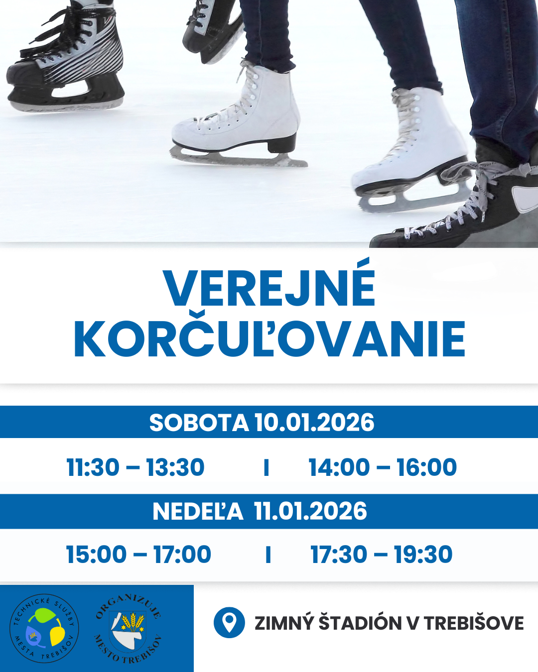 Ľadová plocha zimného štadióna je pre vás pripravená v uvedených časoch.
