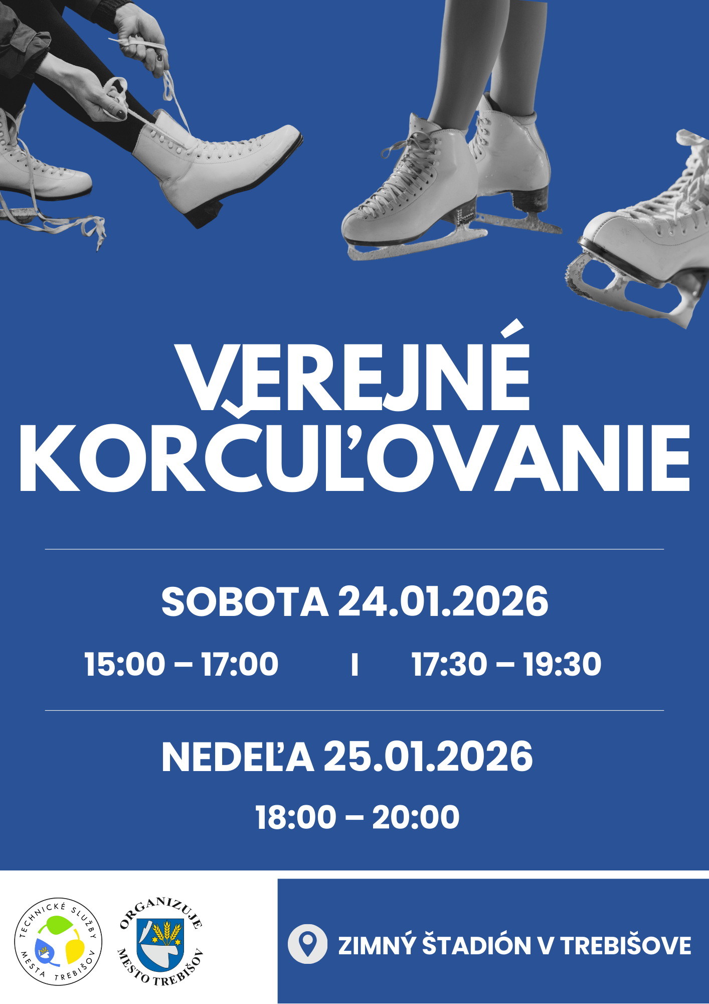 Ľadová plocha zimného štadióna je pre vás pripravená v uvedených časoch.