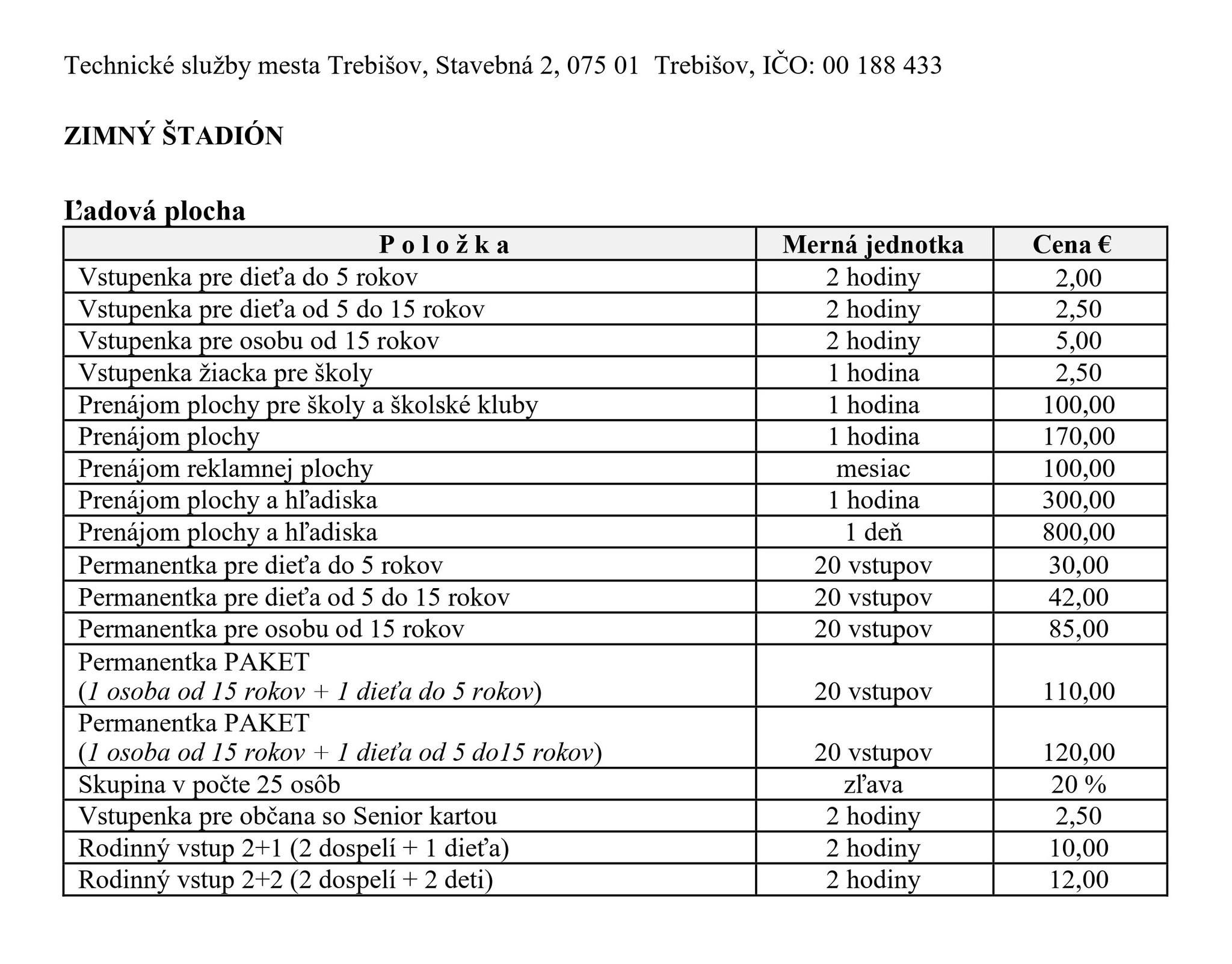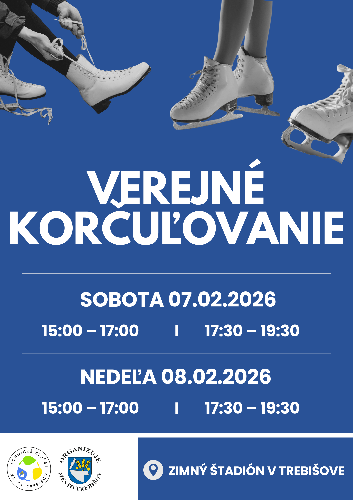 Ľadová plocha zimného štadióna je pre vás pripravená v uvedených časoch.