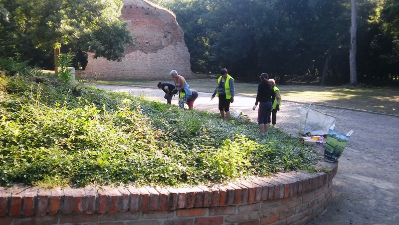 Piatok 16.6.2017 vykonali pracovníci Mestského hospodárskeho strediska údržbu zelene na ostrovčeku v mestskom parku. Realizovali strih okrasných krov a pletie burín vo výsadbe.