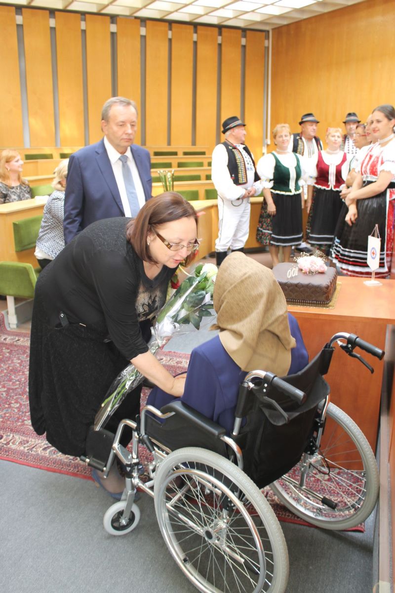 Príjemné stretnutie spojené s priateľským posedením pripravilo vedenie Územného spolku SČK v Trebišove. Po zápise do pamätnej knihy mesta Trebišov, ÚzS SČK Trebišov a do kroniky obce Nový Ruskov oslávenkyňa prijímala srdečné gratulácie nielen od najbližšej rodiny, pracovníkov zariadenia, ale aj od primátora mesta Trebišov PhDr. Marka Čižmára, starostu obce Nový Ruskov Ing. Jána Borovského a ďalších významných hostí, ako i prítomných zástupcov štátnych i neštátnych organizácií v meste.