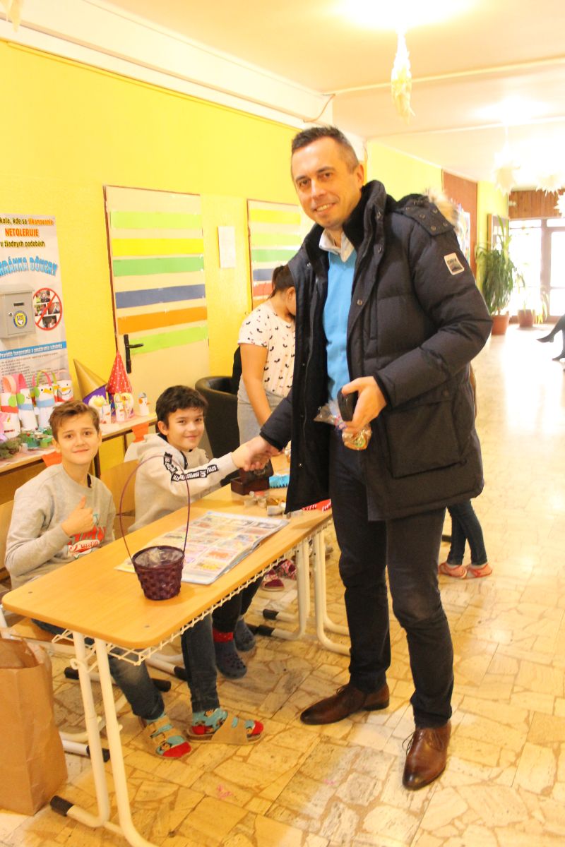 Tejto školskej akcie sa zúčastnil aj primátor mesta Trebišov PhDr. Marek Čižmár, ktorý sa pri jednotlivých stoloch a žiakoch zastavil a podporil ich kúpou vybraných výrobkov.