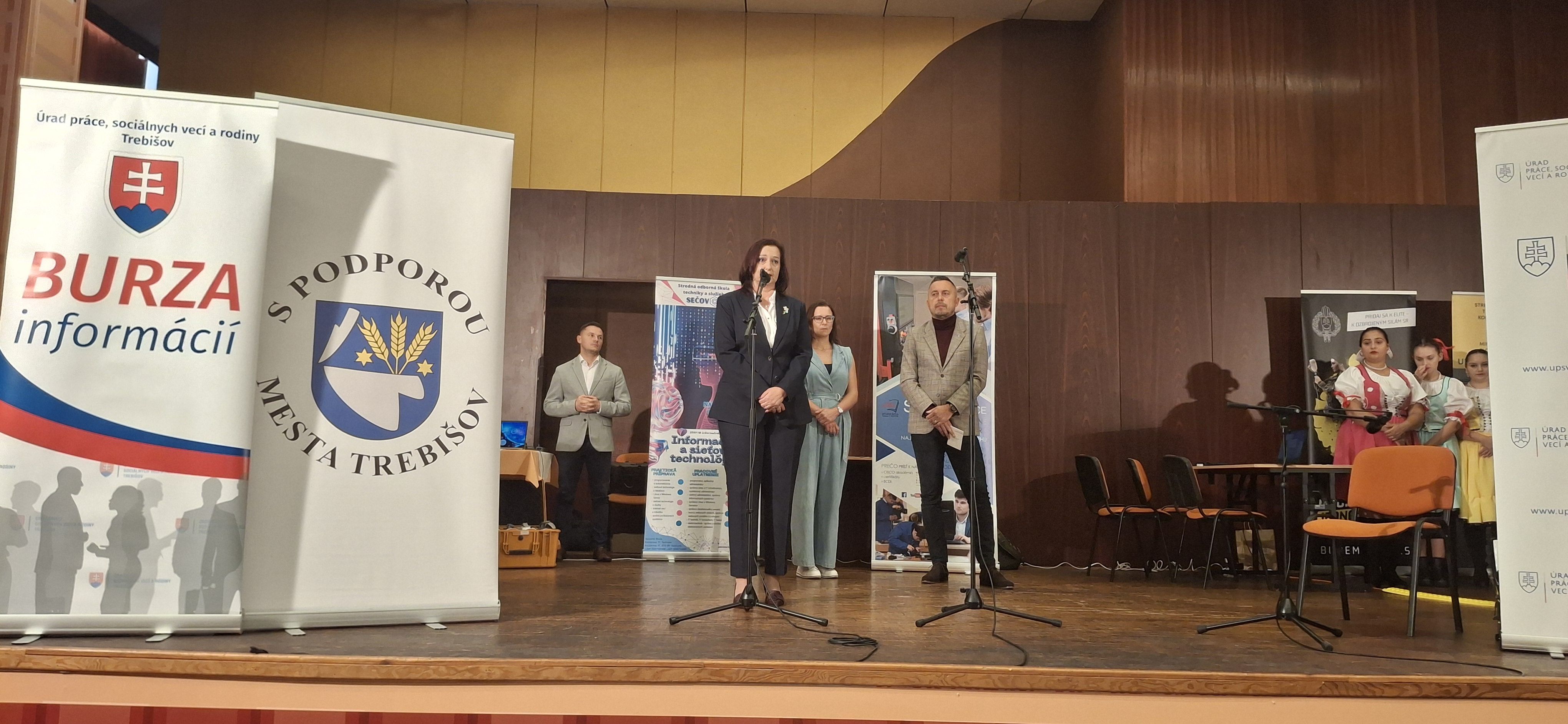 Burzu informácií otvorili svojimi príhovormi primátor mesta Trebišov PhDr. Marek Čižmár a riaditeľka Úradu práce, sociálnych vecí a rodiny v Trebišove JUDr. Beáta Tóthová.