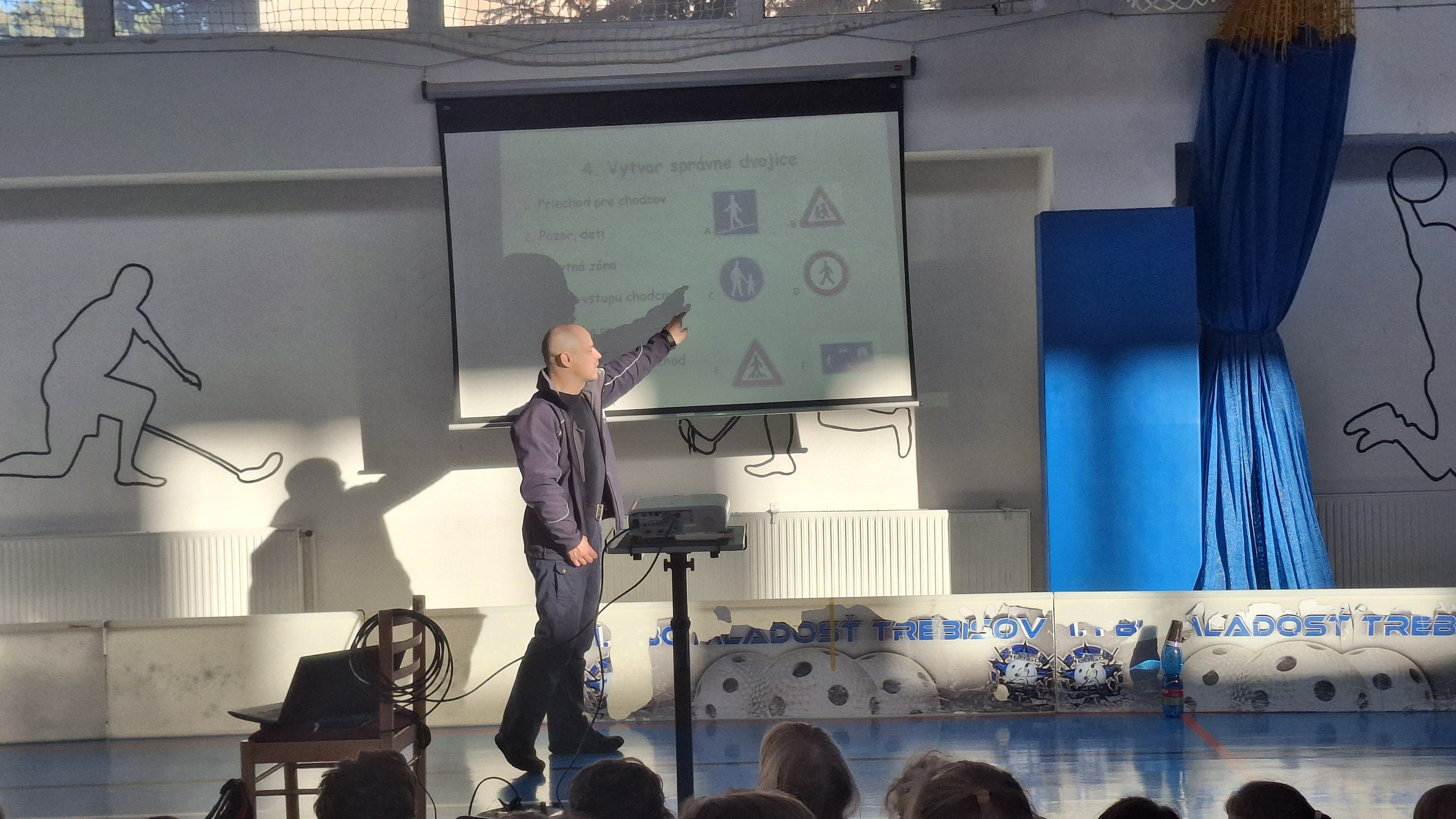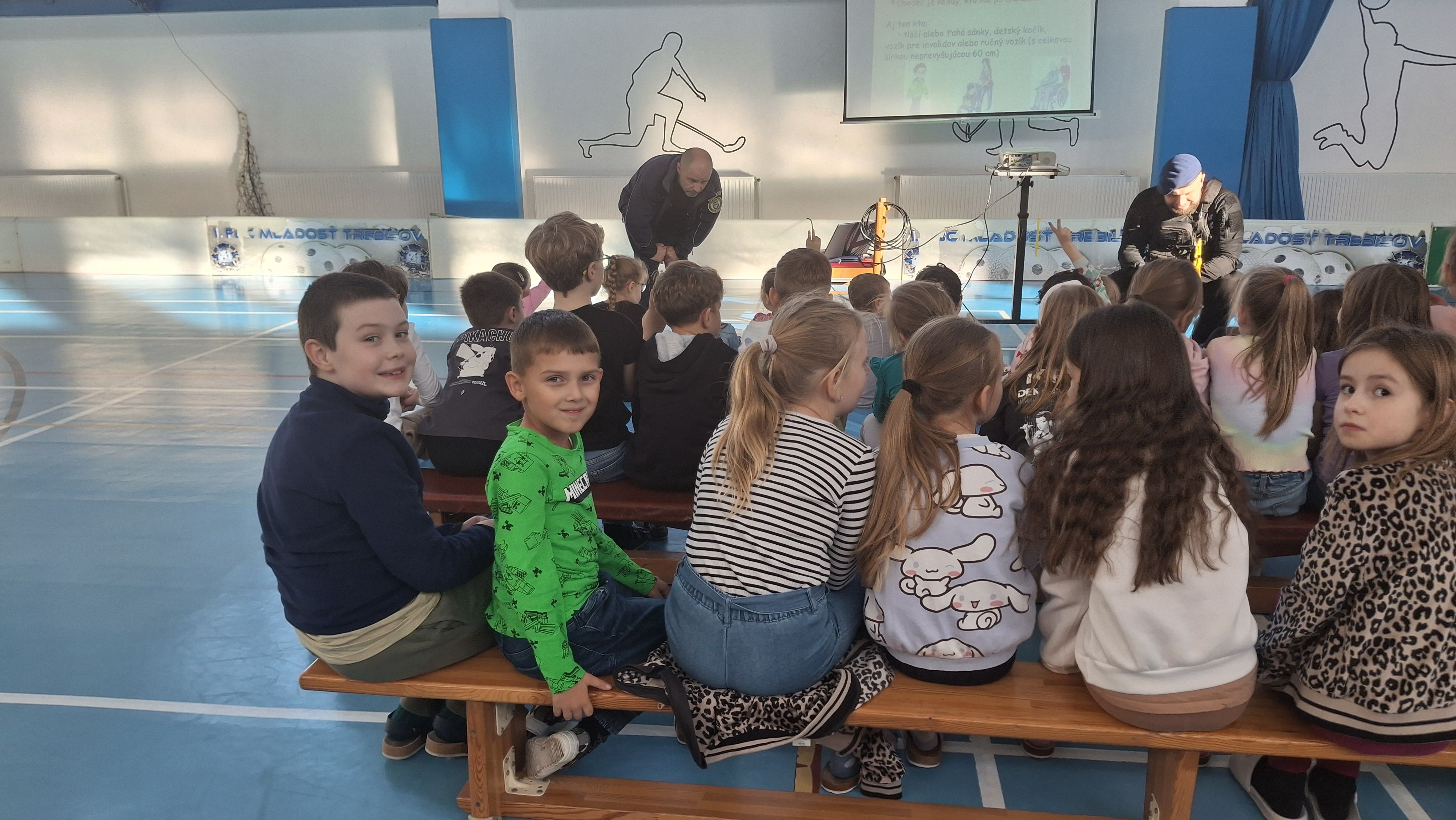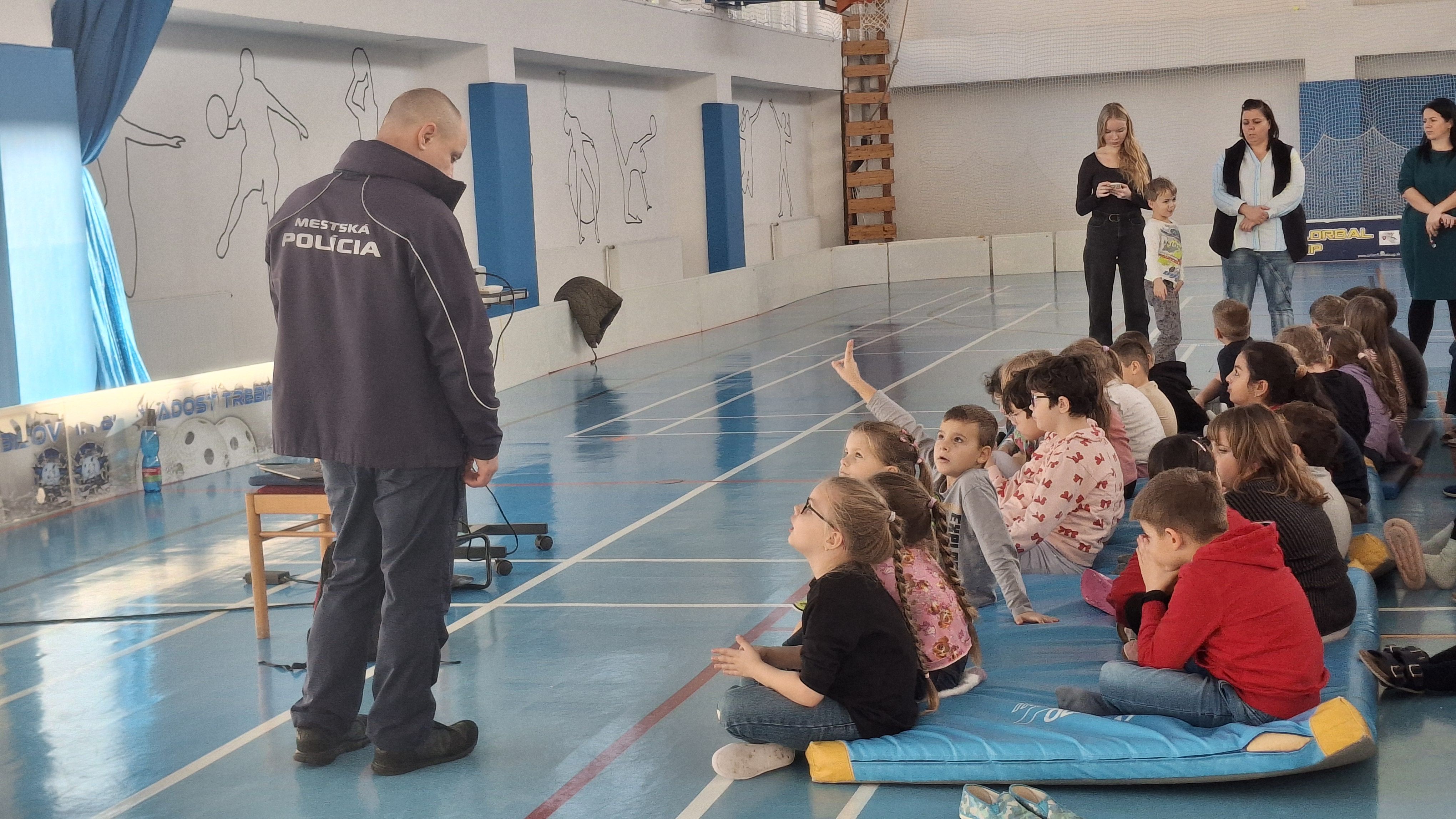 Počas prednášky sa deti hravou formou naučili základné pravidlá cestnej premávky – dozvedeli sa o bezpečnom pohybe po cestách, o význame dopravných značiek a o tom, ako sa správne správať ako chodci v uliciach mesta.