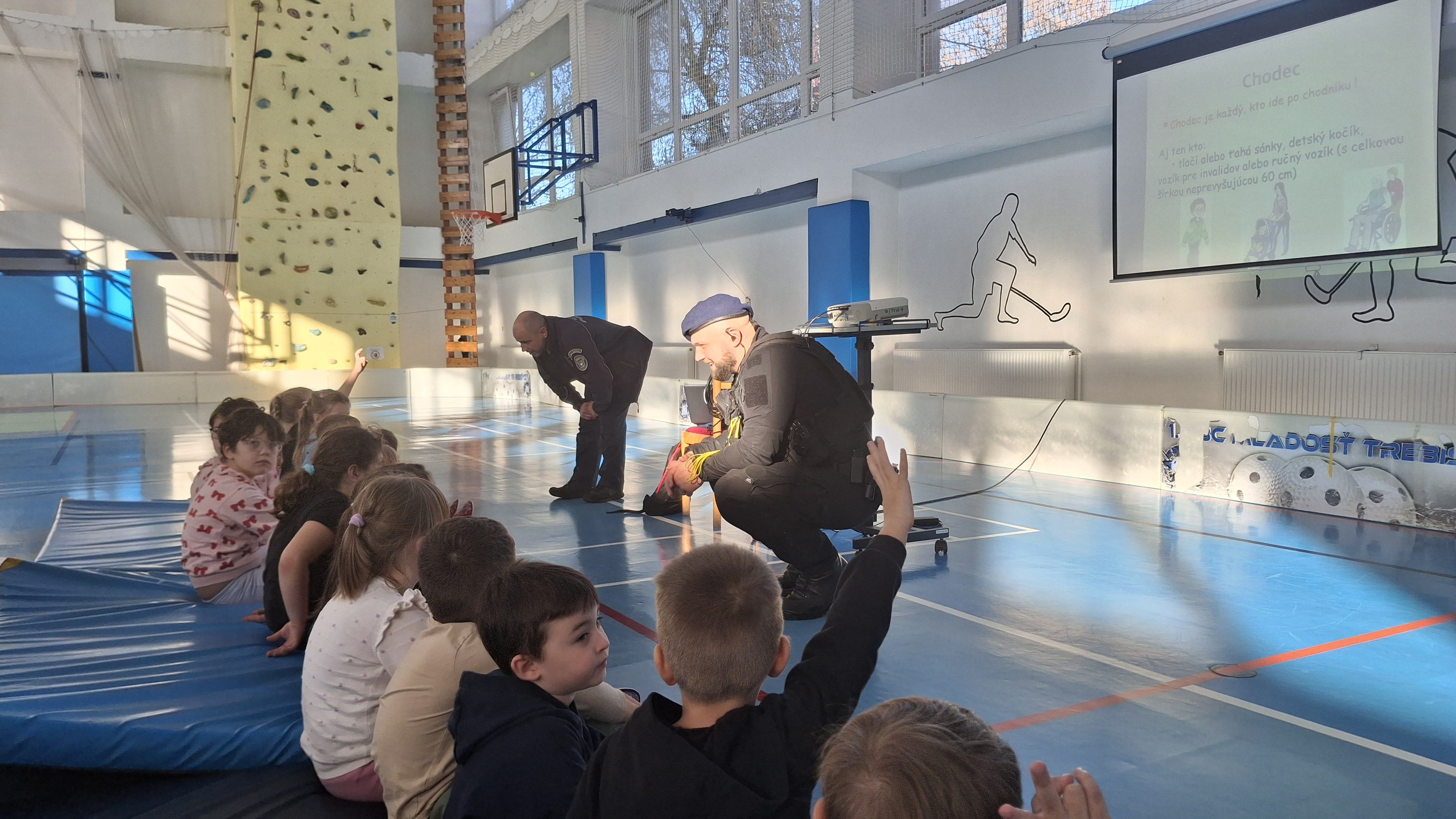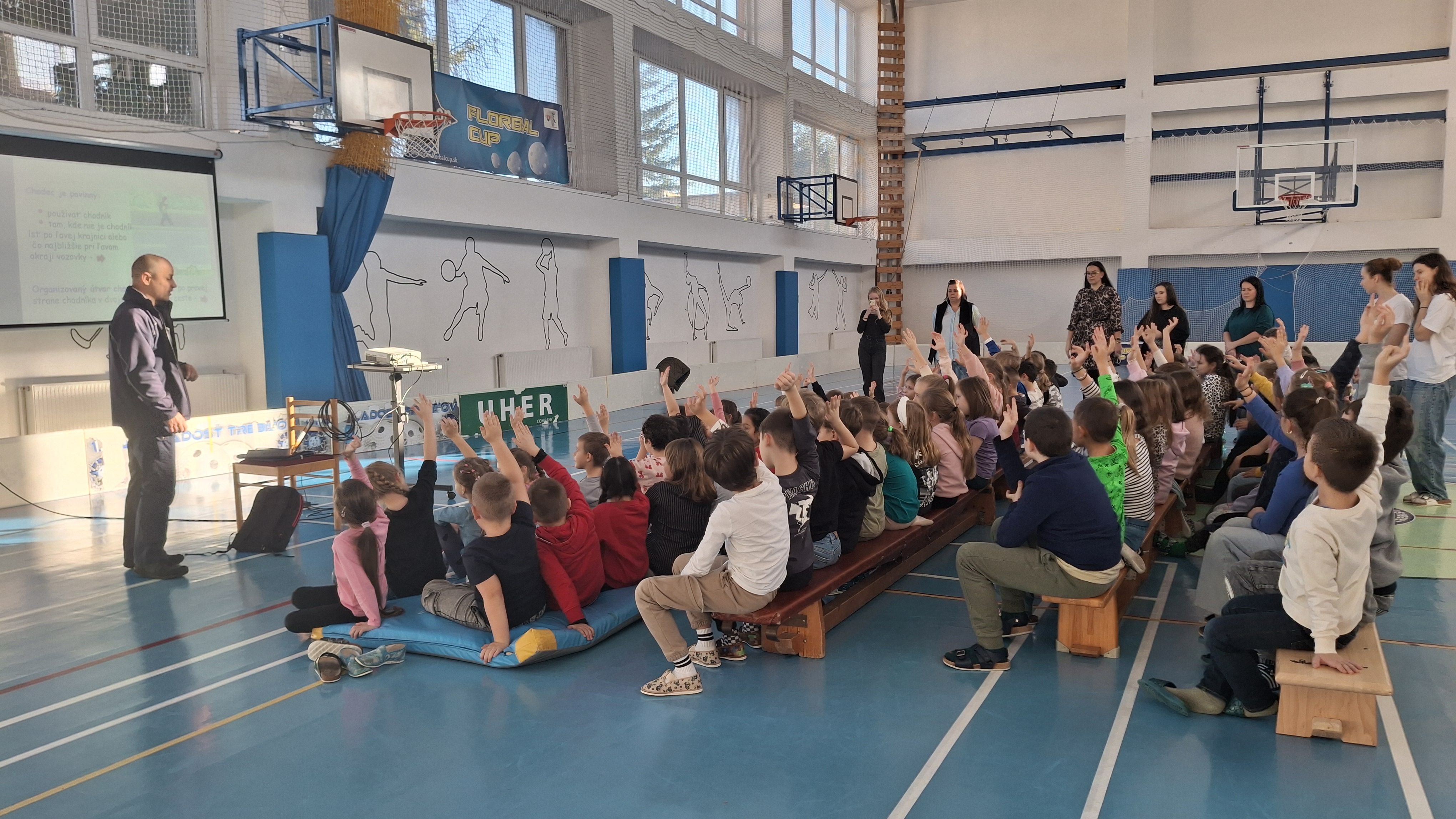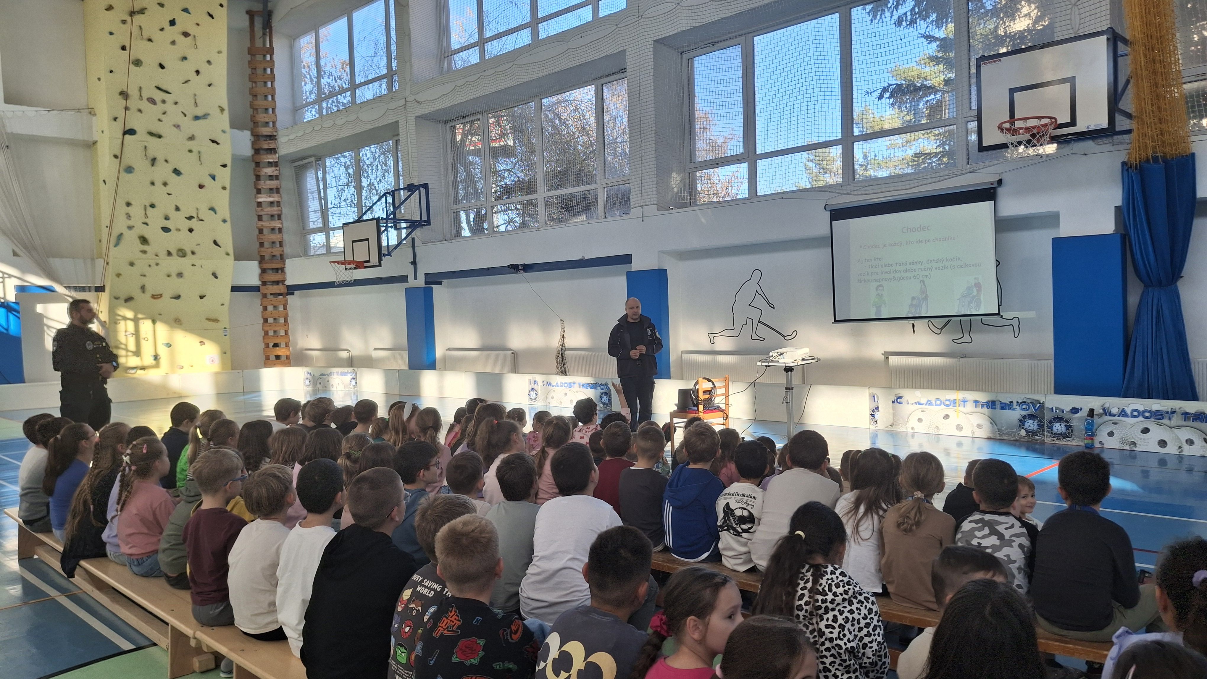Počas prednášky sa deti hravou formou naučili základné pravidlá cestnej premávky – dozvedeli sa o bezpečnom pohybe po cestách, o význame dopravných značiek a o tom, ako sa správne správať ako chodci v uliciach mesta.
