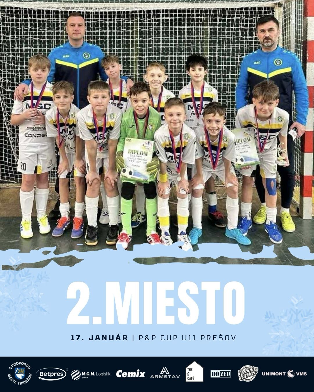 Naši prípravkári Slavoj Trebišov kategórie U11 obsadili na halovom turnaji P&P CUP v Prešove konečné 2. miesto.
