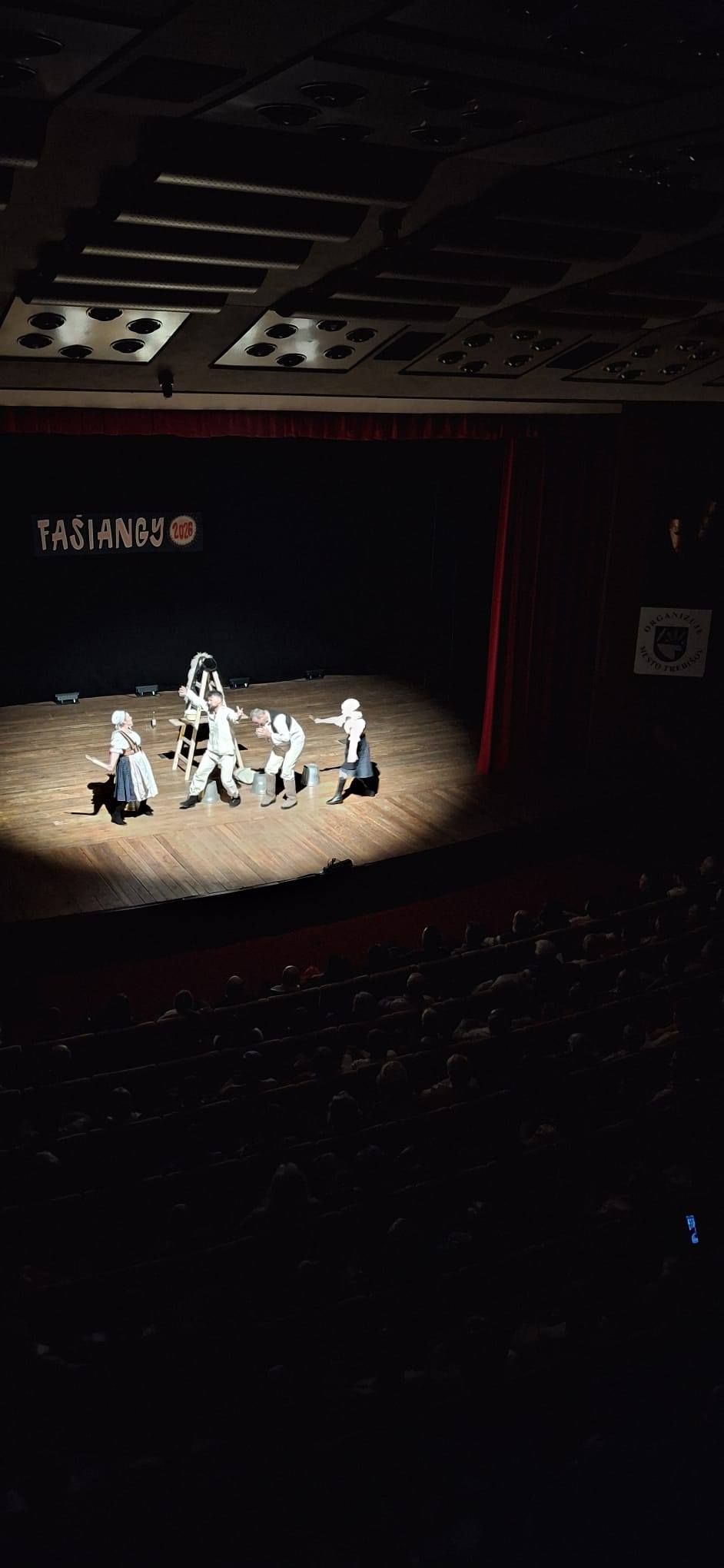V podvečerných hodinách pokračovali fašiangové oslavy v divadelnej sále MsKS Trebišov, kde sa konali Trebišovské fašiangy 2026. V úvode podujatia všetkých prítomných srdečne privítal primátor mesta Trebišov Marek Čižmár. Vrcholom programu bolo kompletne vypredané divadelné predstavenie Rysavá jalovica v podaní Divadla na predmestí, ktoré obohatilo fašiangové oslavy o výnimočný kultúrny zážitok. Humor, energia a poctivé herecké výkony rozosmiali publikum od prvej chvíle a vytvorili pravú fašiangovú atmosféru.