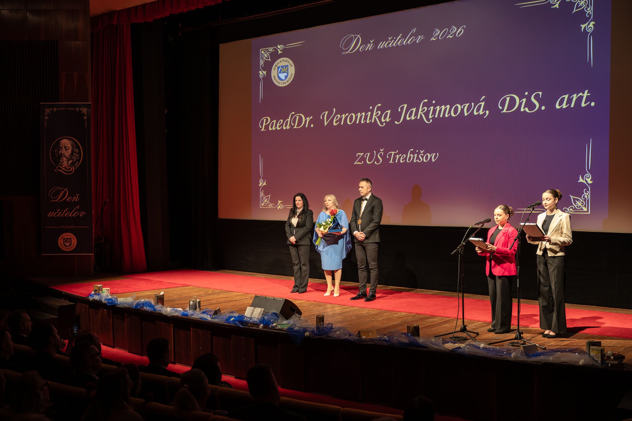 V piatok 27. marca 2026 sa v divadelnej sále Mestského kultúrneho strediska v Trebišove uskutočnilo slávnostné podujatie pri príležitosti Dňa učiteľov, ktoré zorganizovalo mesto Trebišov v spolupráci s MsKS.