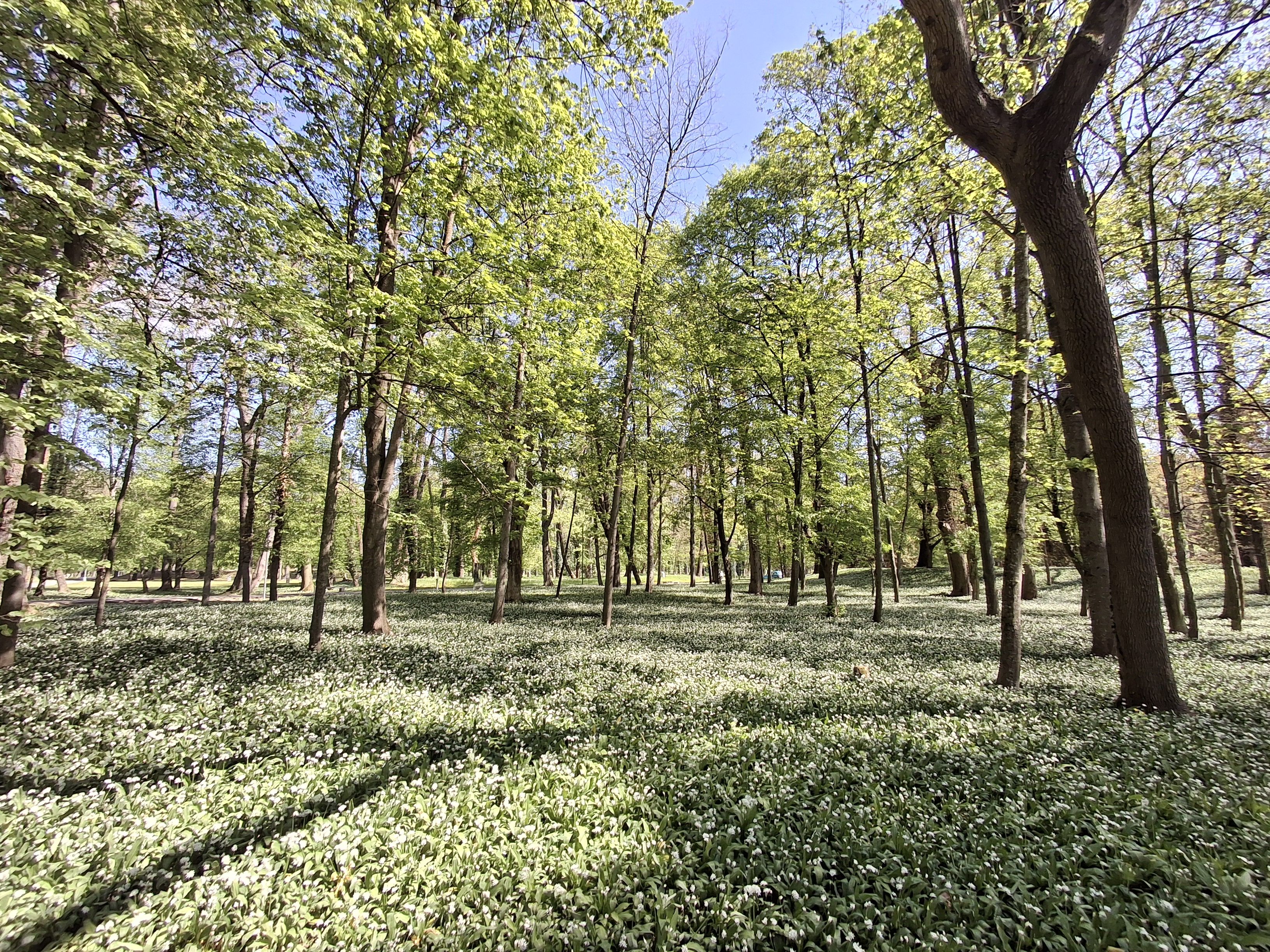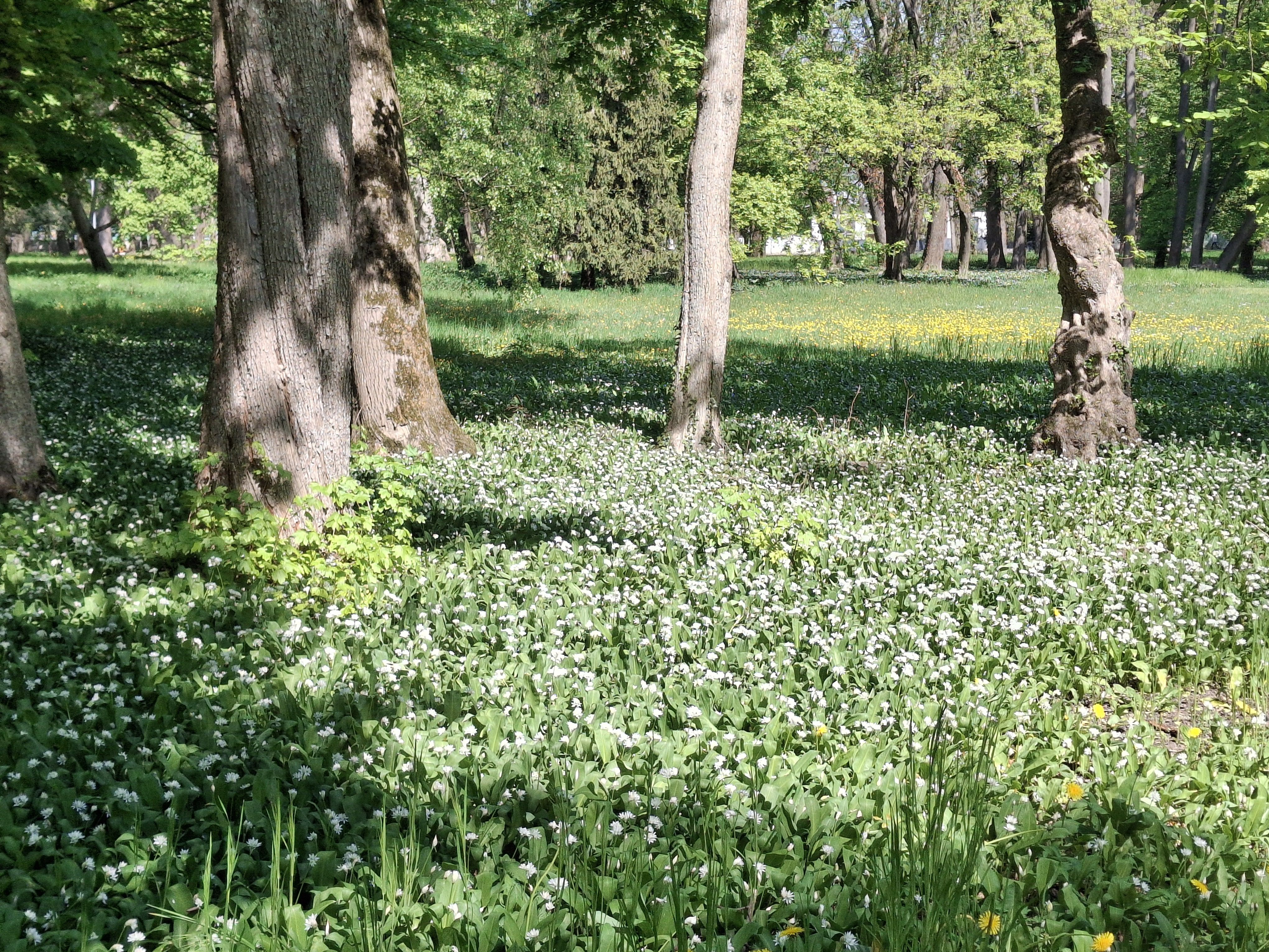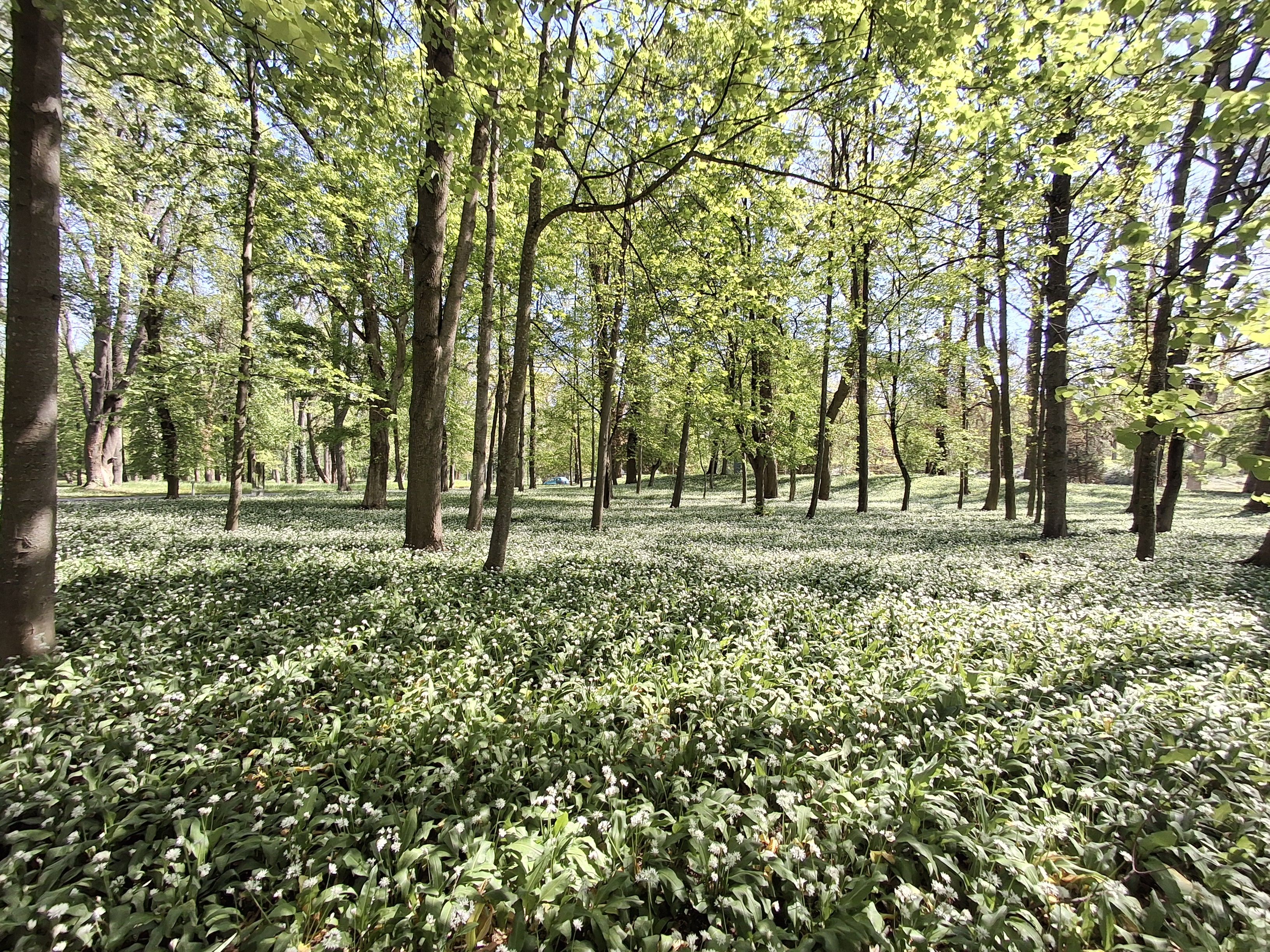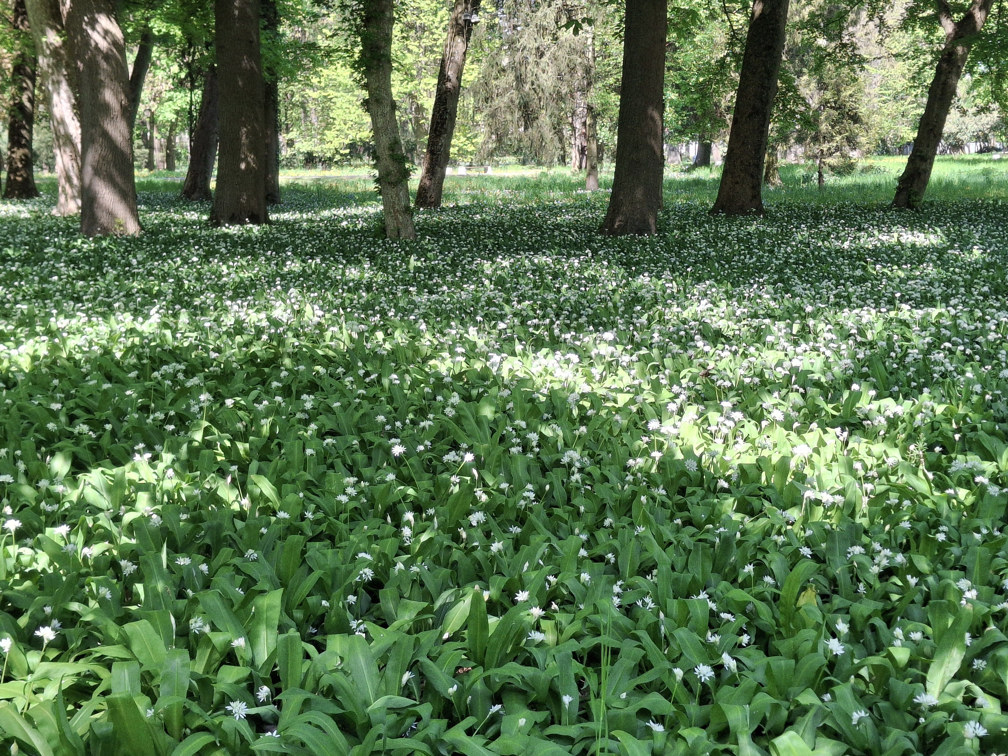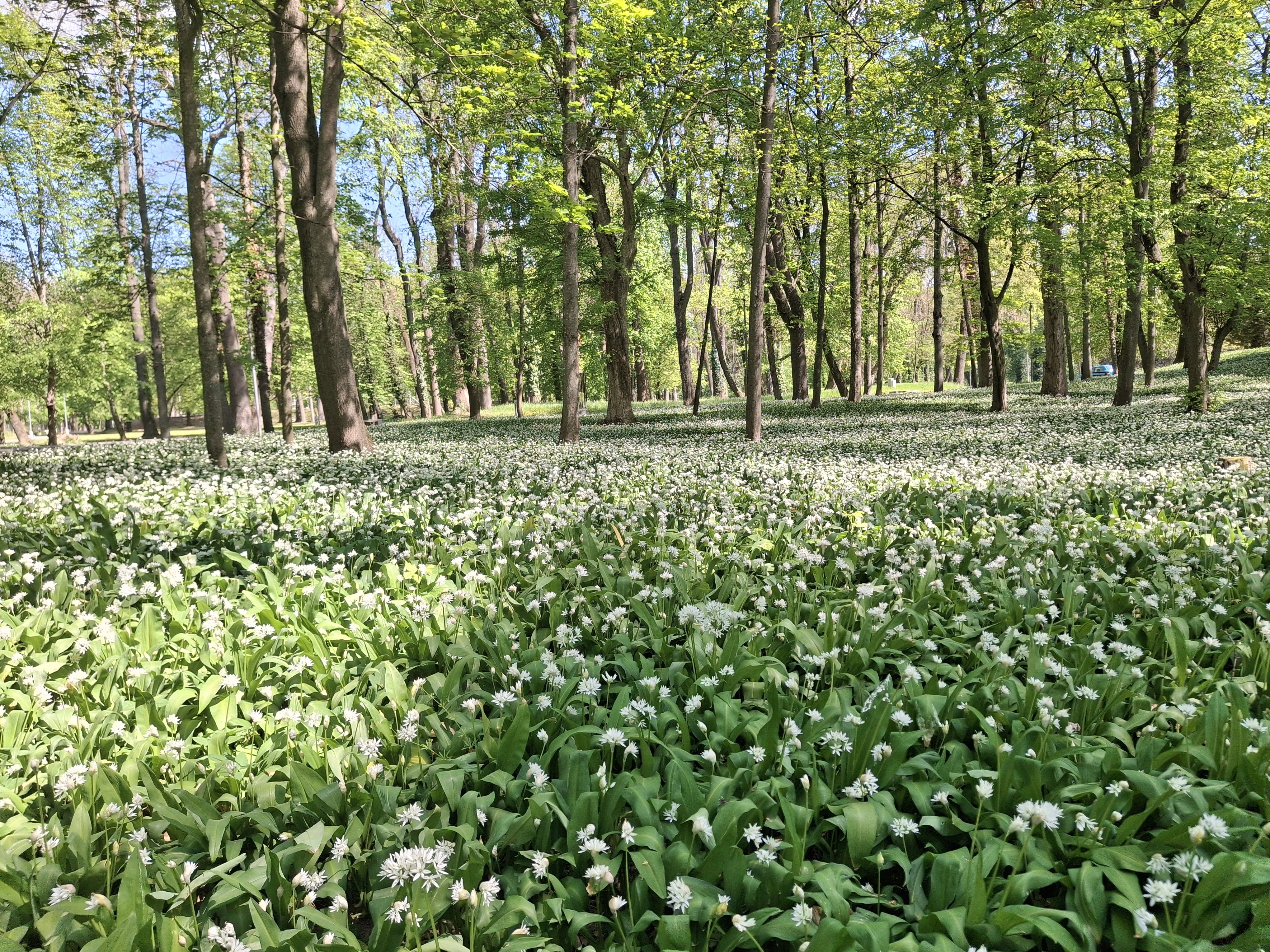 Biele polia medvedieho cesnaku už zdobia náš mestský park.