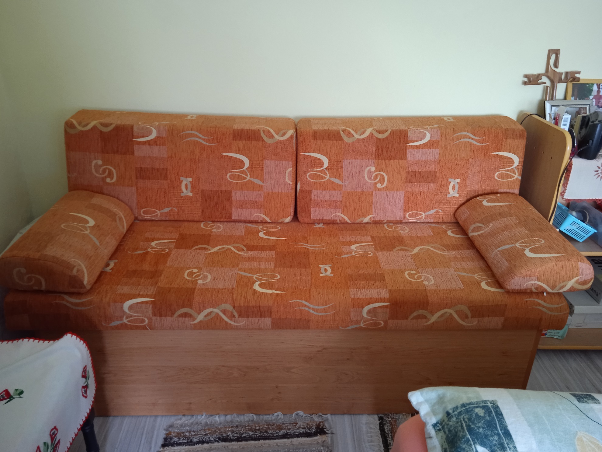 Predám váľandu, poslúži aj ako gauč, alebo posteľ pre dieťa, má vysoký úložný priestor, nepoužívaná, predám za 120 Eur, rozmery: dĺžka 173 cm, šírka dole drevo 74 cm, s epedou 76 cm, výška sedenie 50 cm, vzadu s operadlom 90 cm. Váľande ja v Trebišove, pri stanici. V prípade záujmu pošlem viac fotiek e-mailom.