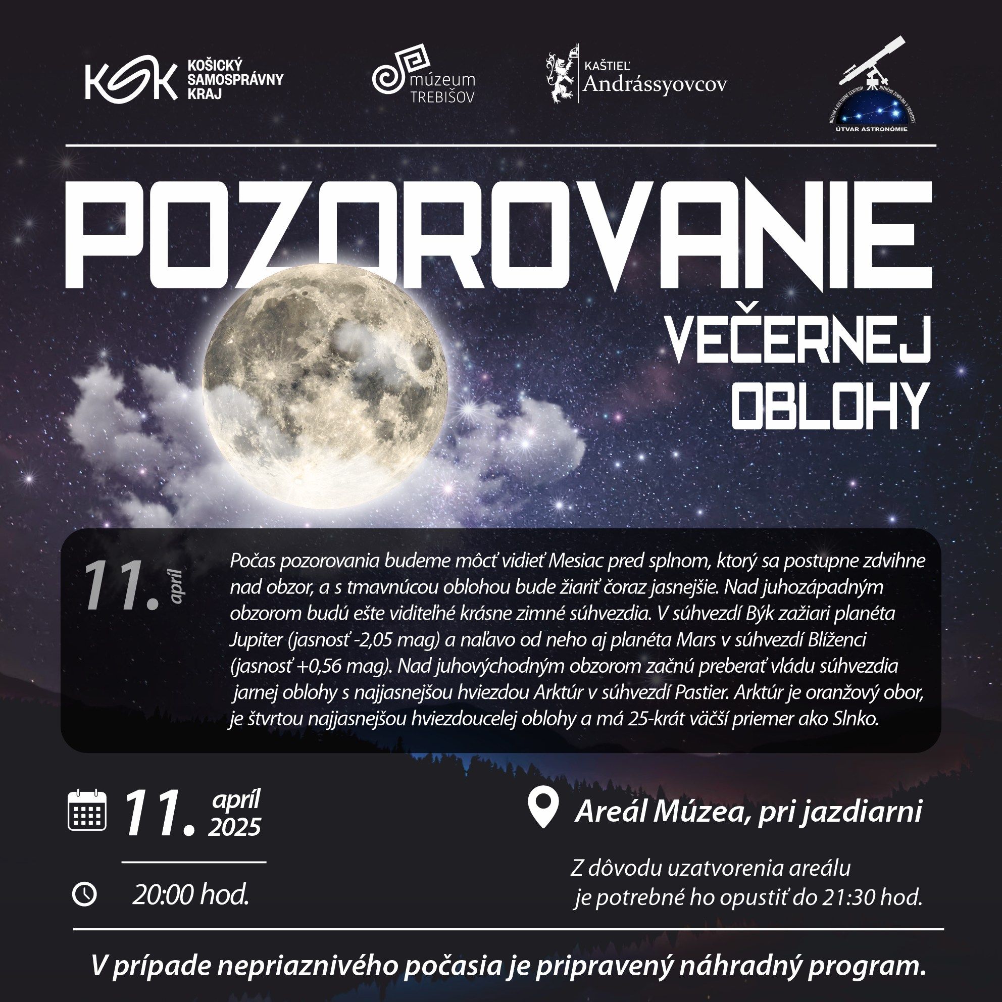 Pozývame vás na pozorovanie večernej oblohy v areáli múzea pri budove jazdiarne.