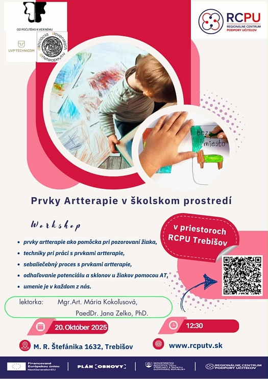 RCPU v Trebišove Vám 20.10.2025 prináša workshop Artterapie v školskom prostredí.