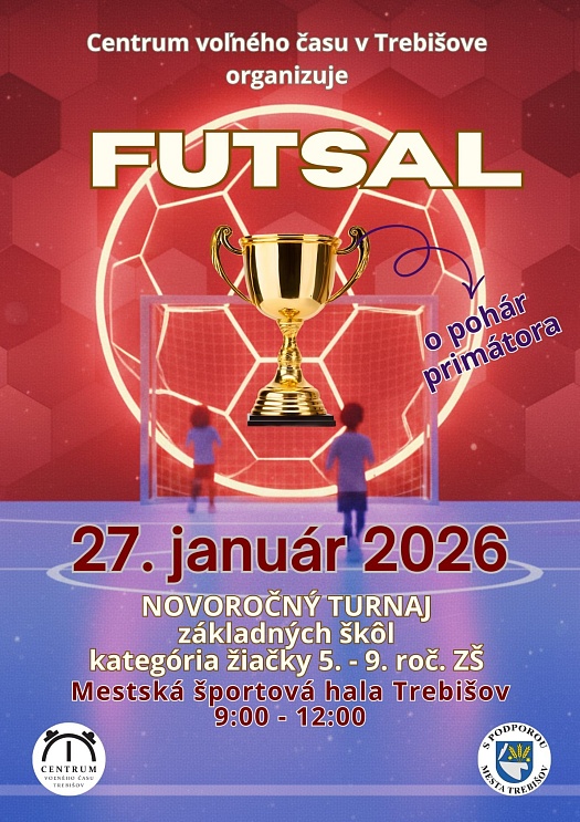 Centrum voľného času Trebišov pripravuje Novoročný futsalový turnaj o Pohár primátora mesta Trebišov.