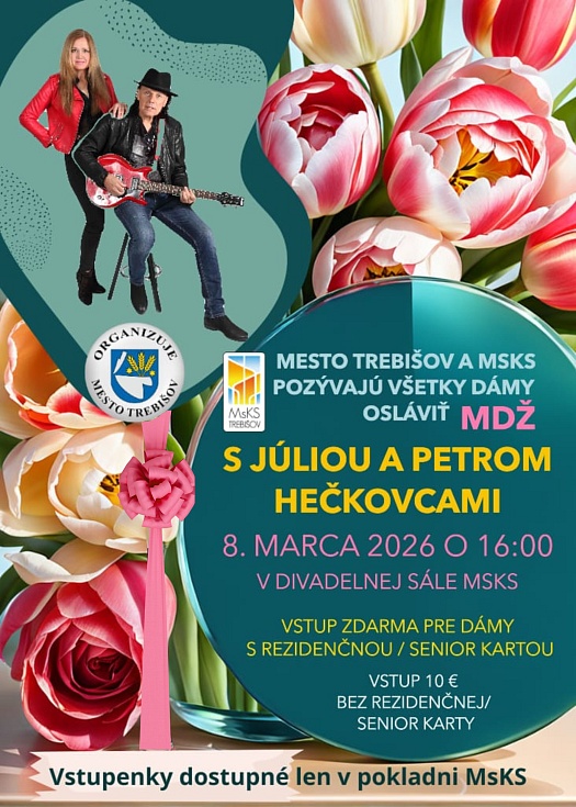 Mesto Trebišov a MsKS pozývajú všetky dámy na príjemné popoludnie plné hudby, vďaky a pohody so skvelými Júliou a Petrom Hečkovcami