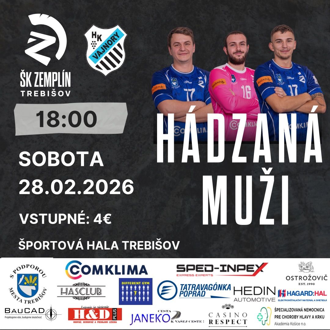 V sobotu 28.02.2026 sa v Mestskej športovej hale v Trebišove odohrajú až 3 zápasy, kde sa predstaví domáci tím ŠK Zemplín Trebišov a Sporta Hlohovec.