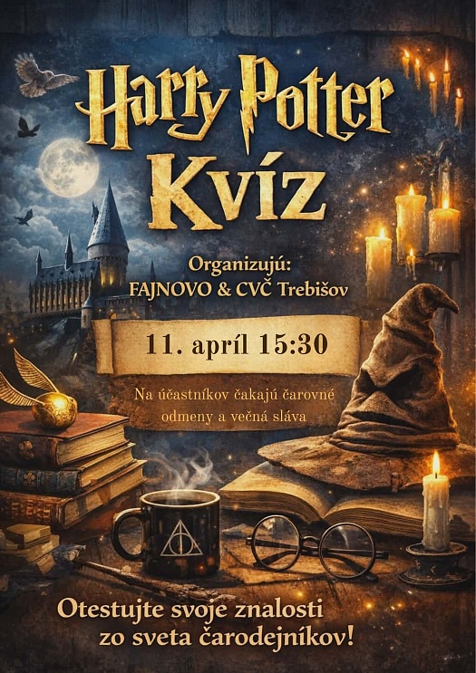 Pozývame vás na tematický kvíz venovaný čarodejníckemu svetu Harryho Pottera, ktorý preverí vaše znalosti od Rokfortu až po poslednú bitku. Príďte si otestovať, ako dobre poznáte fakty, detaily aj zákutia magického sveta.