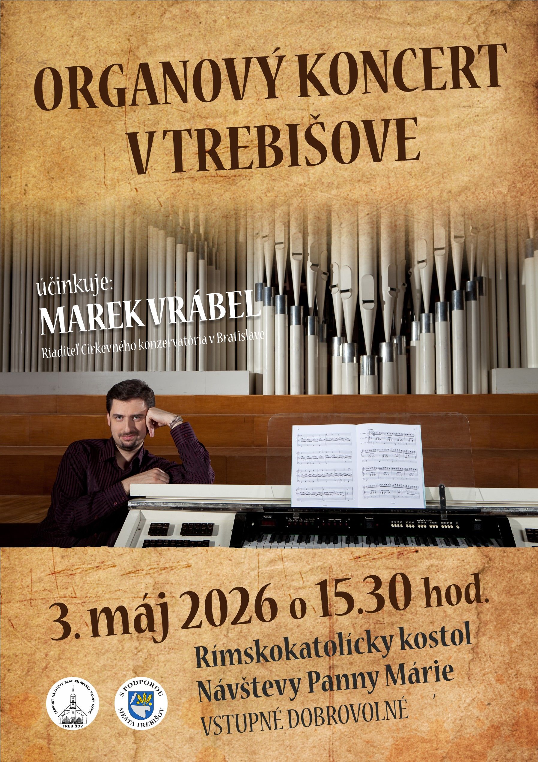 Srdečne vás pozývame na výnimočný hudobný zážitok v podaní jedného z najvýraznejších predstaviteľov slovenského organového umenia – Mareka Vrábela.